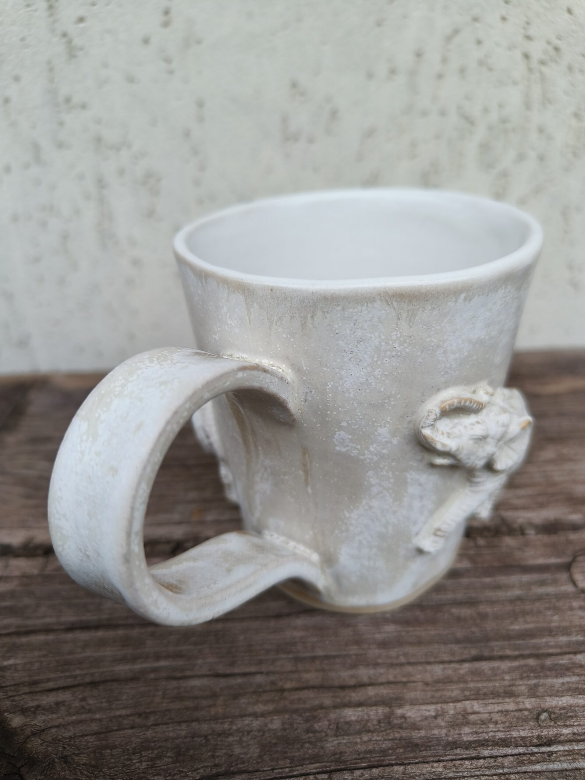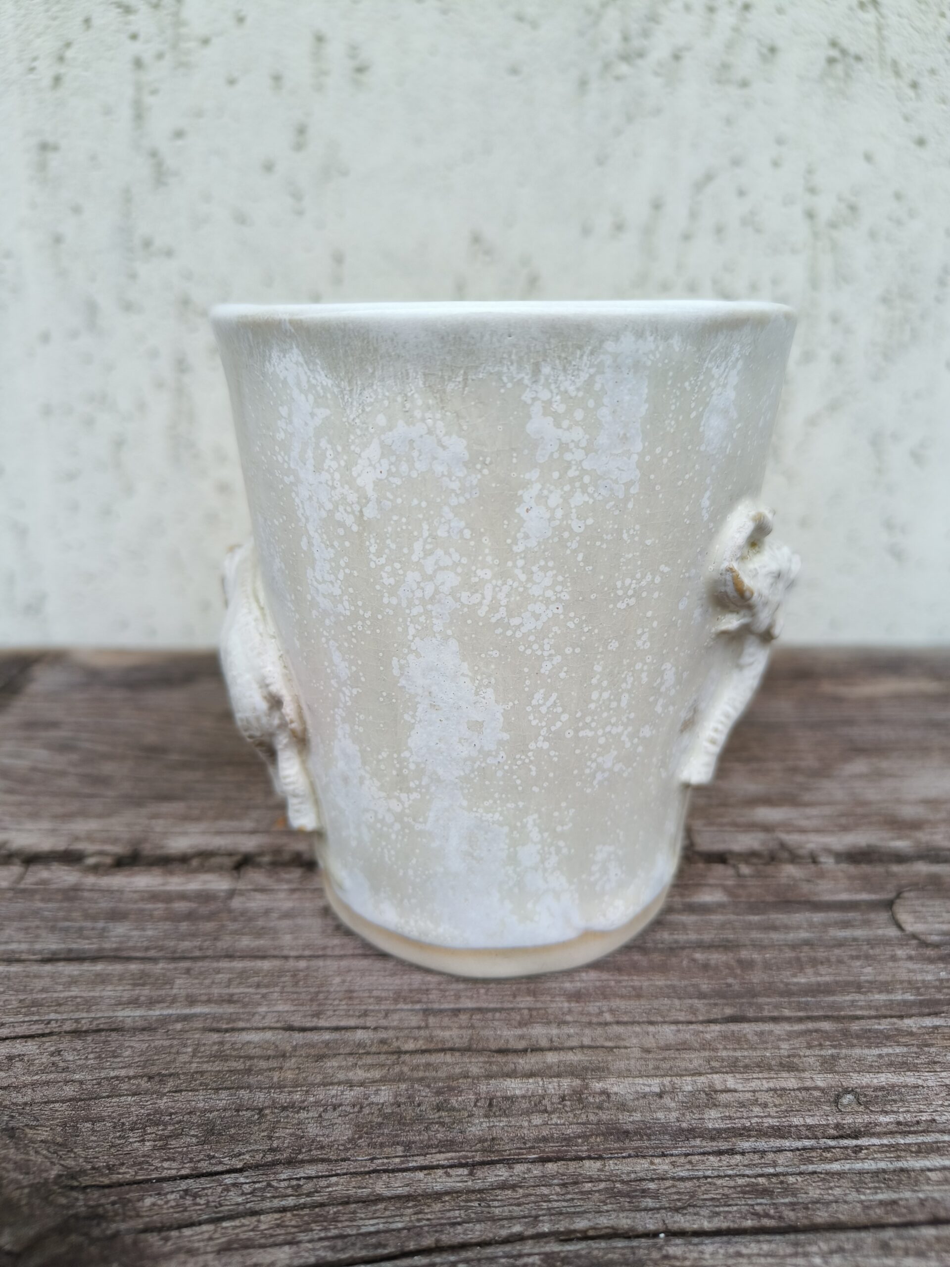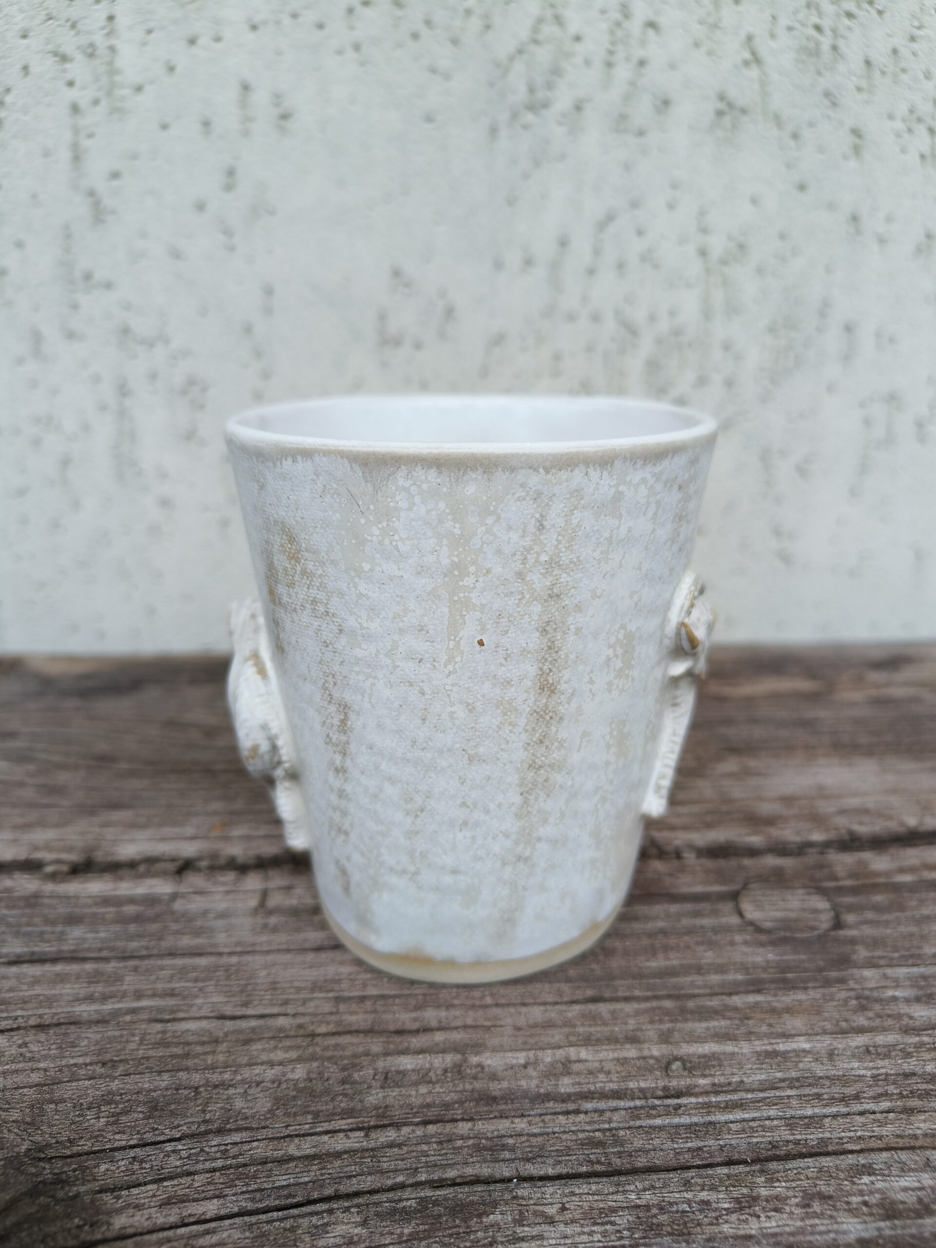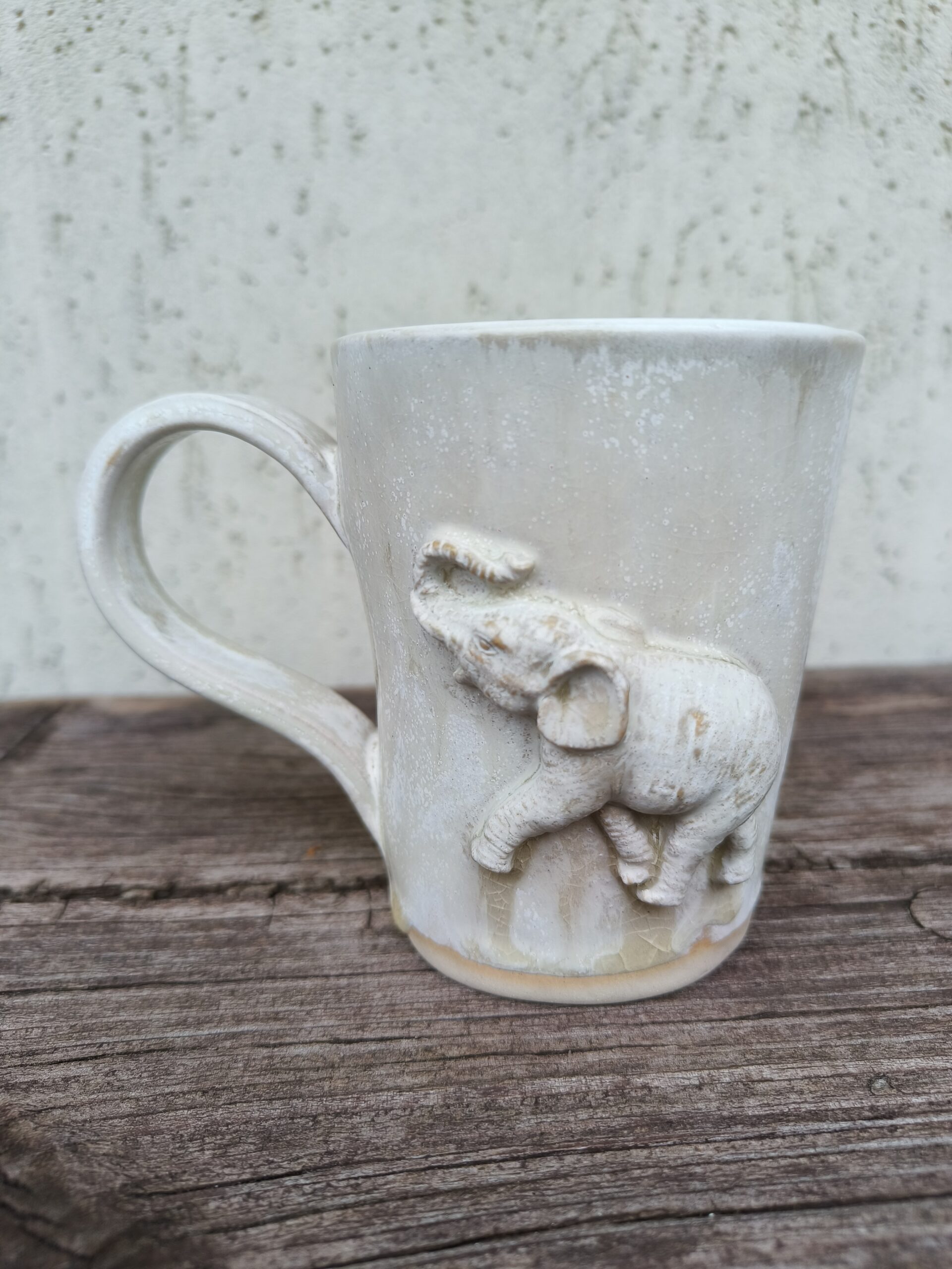 Kõrgkuumus käsitöökeraamika. Kolm ühesuurust tassi pealt mati ja seest läikiva glasuuriga. Igal tassil on erinev elevant. Ühe tassi mõlemal küljel samasugused elevandid. Tasside läbimõõt ülevalt 8,5 cm ja alt 6,5 cm. Kõrgus 10 cm. Mahutavus 300 ml. Võib pesta nõudepesumasinas. Komplekti sobivad alustaldrikud leiab SIIT.