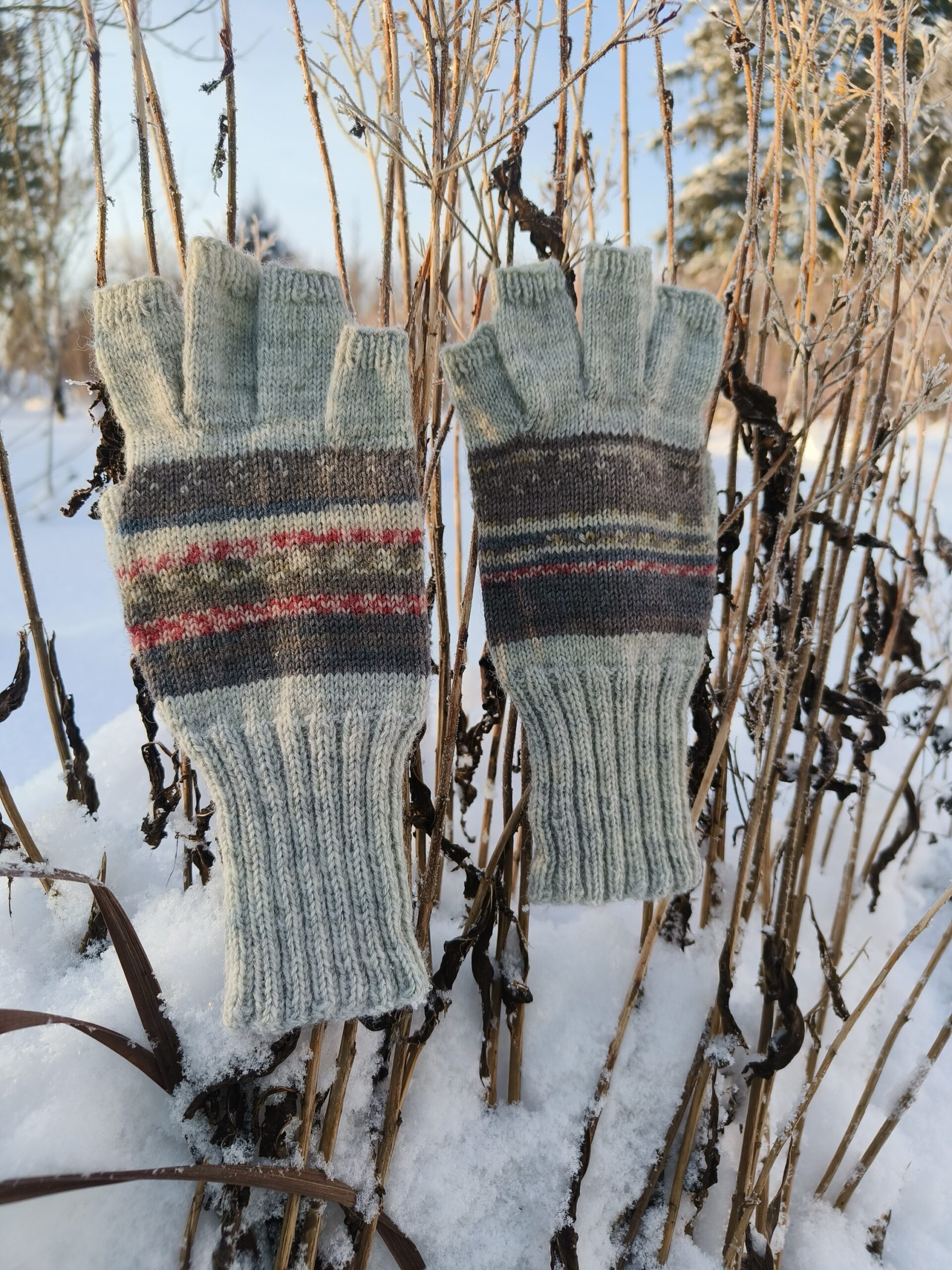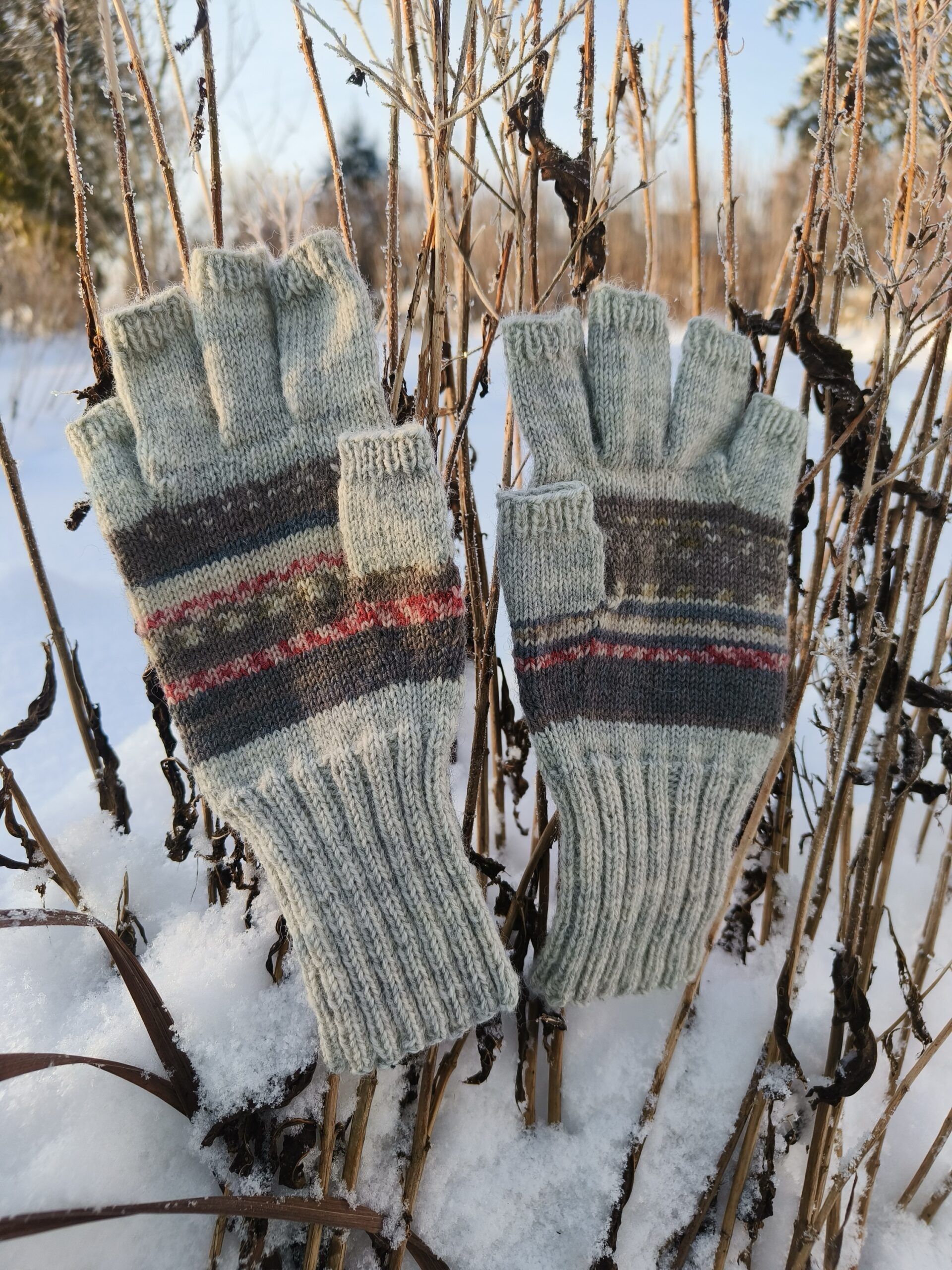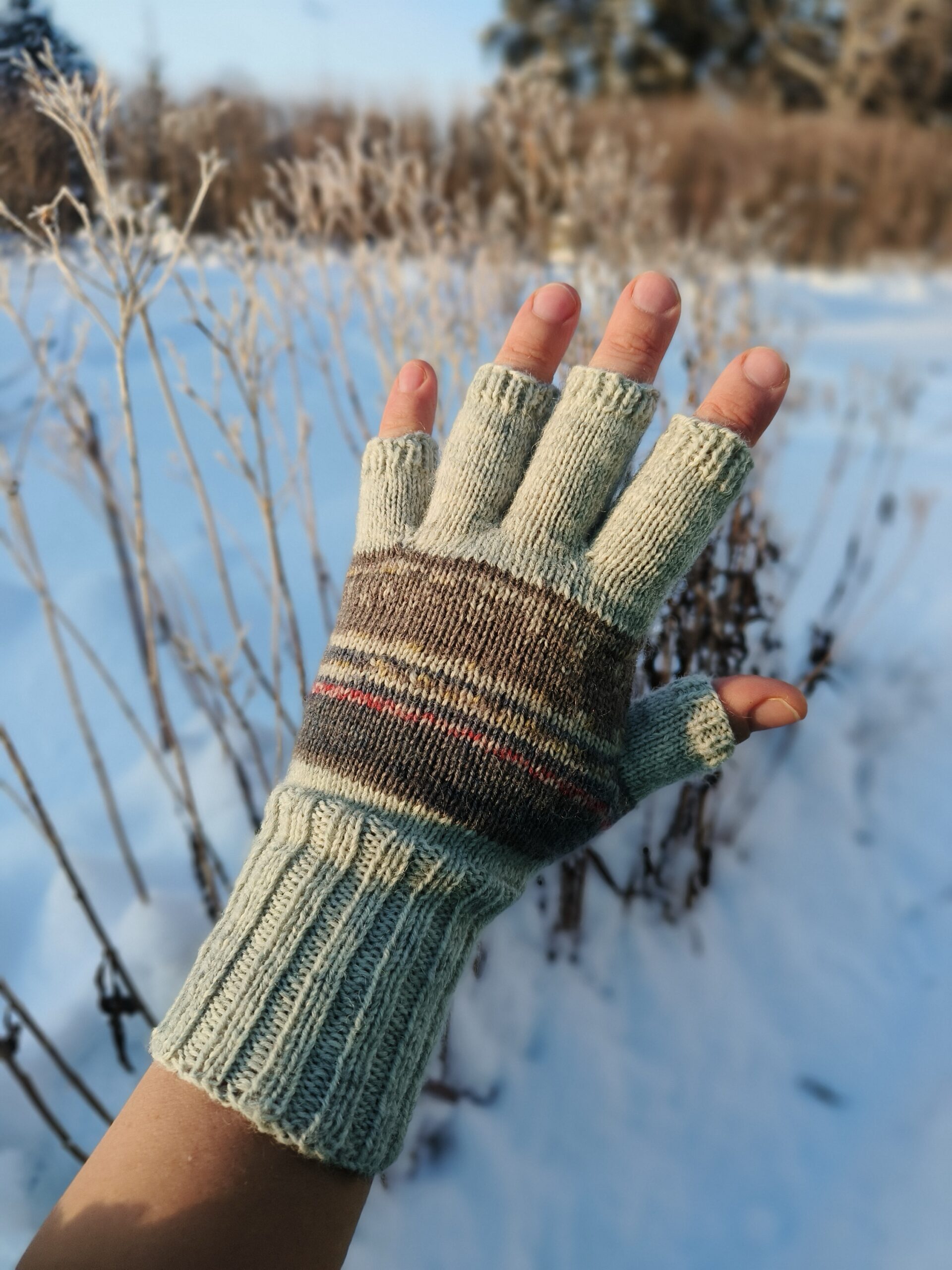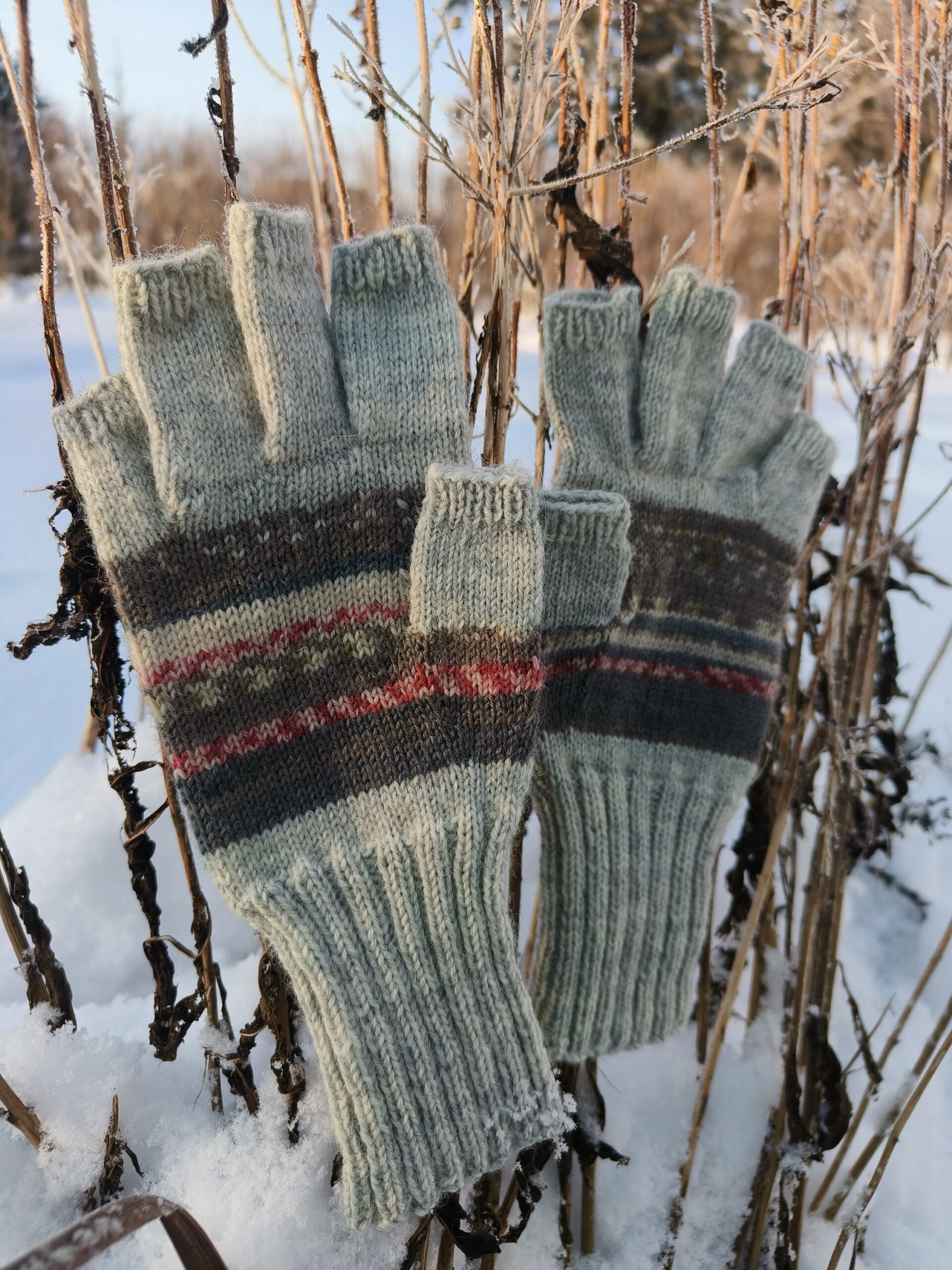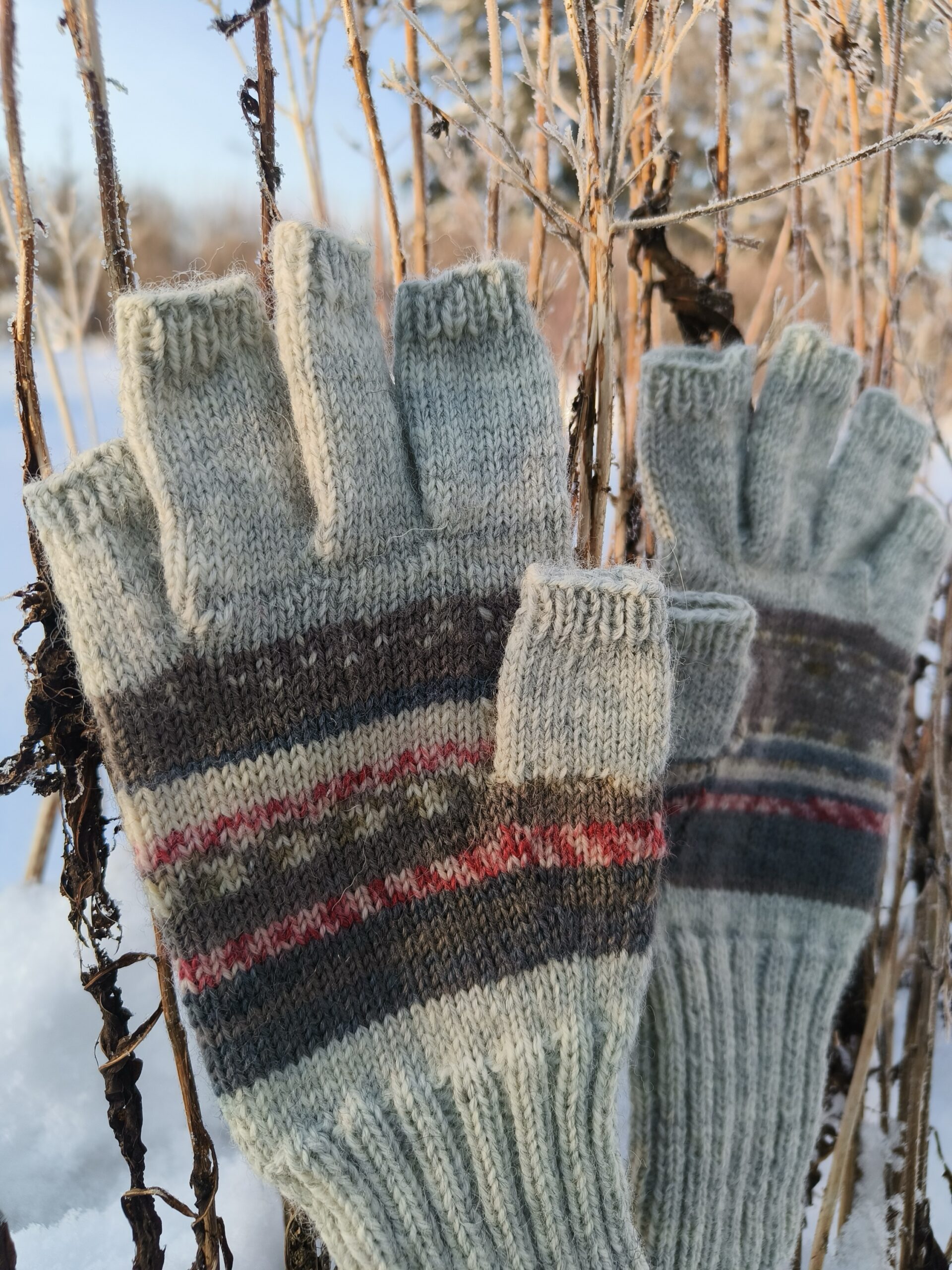 Lahtiste sõrmeotstega mugavad ja praktilised sõrmikud. Tänu pöidlakiilule ja eraldi kootud sõrmedele järgib kinnas täpselt käe kuju ja tagab liikumismugavuse. Sõrmed ja randmeosa on mõnusalt pikad, et käed ikka võimalikult soojas püsiksid. Vastupidav nn sokilõng ei vanu ega kaota vormi ning talub hästi masinpesu. Muster moodustub kirjust lõngast, seetõttu pole kinda siseküljel ebamugavaid lõngajookse. Koostis 75% villa, 25% polüamiidi. Käelaba laius 9,5 cm. Sobib käele ümbermõõduga 19-20 cm.