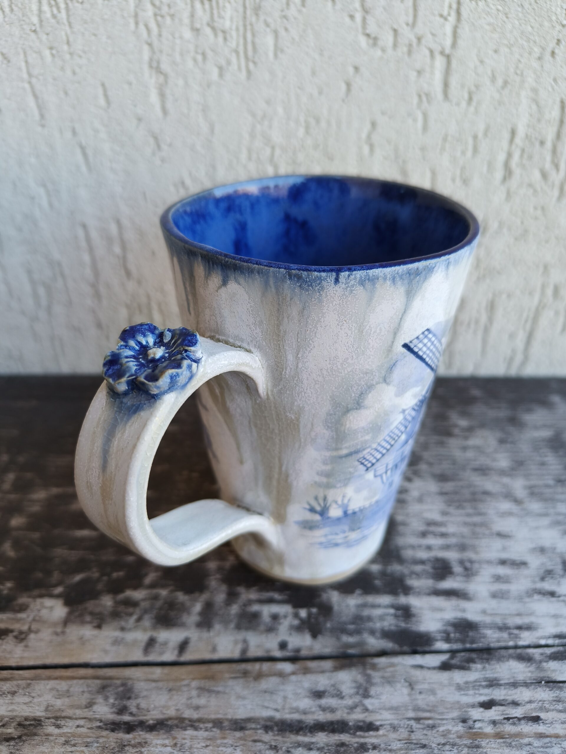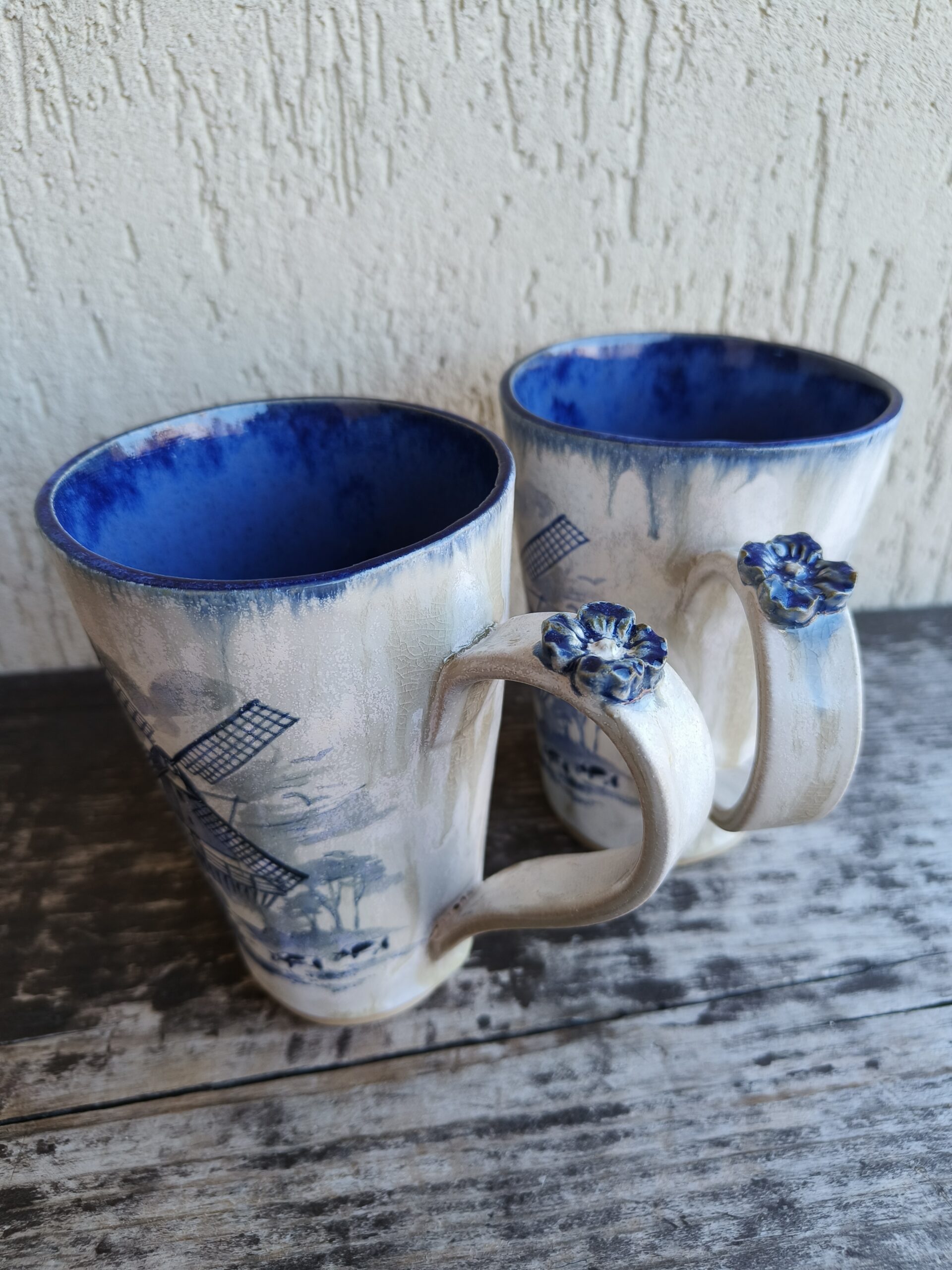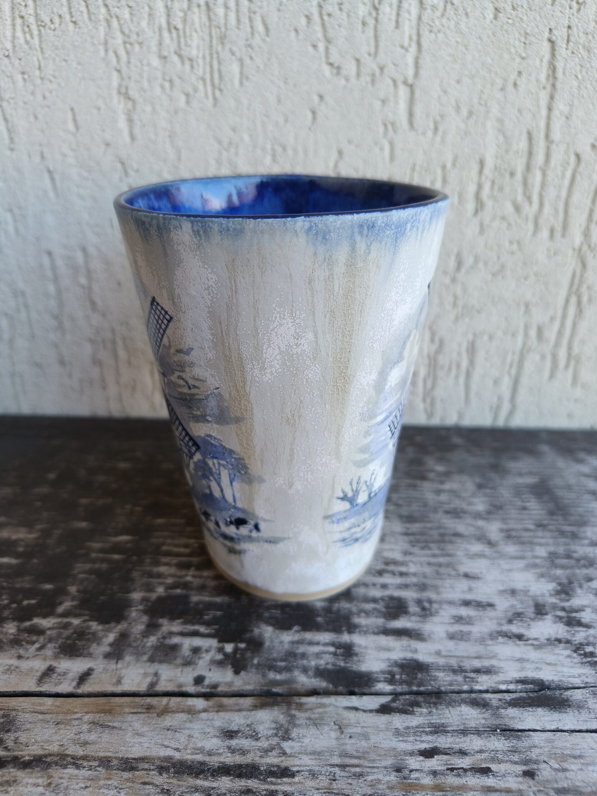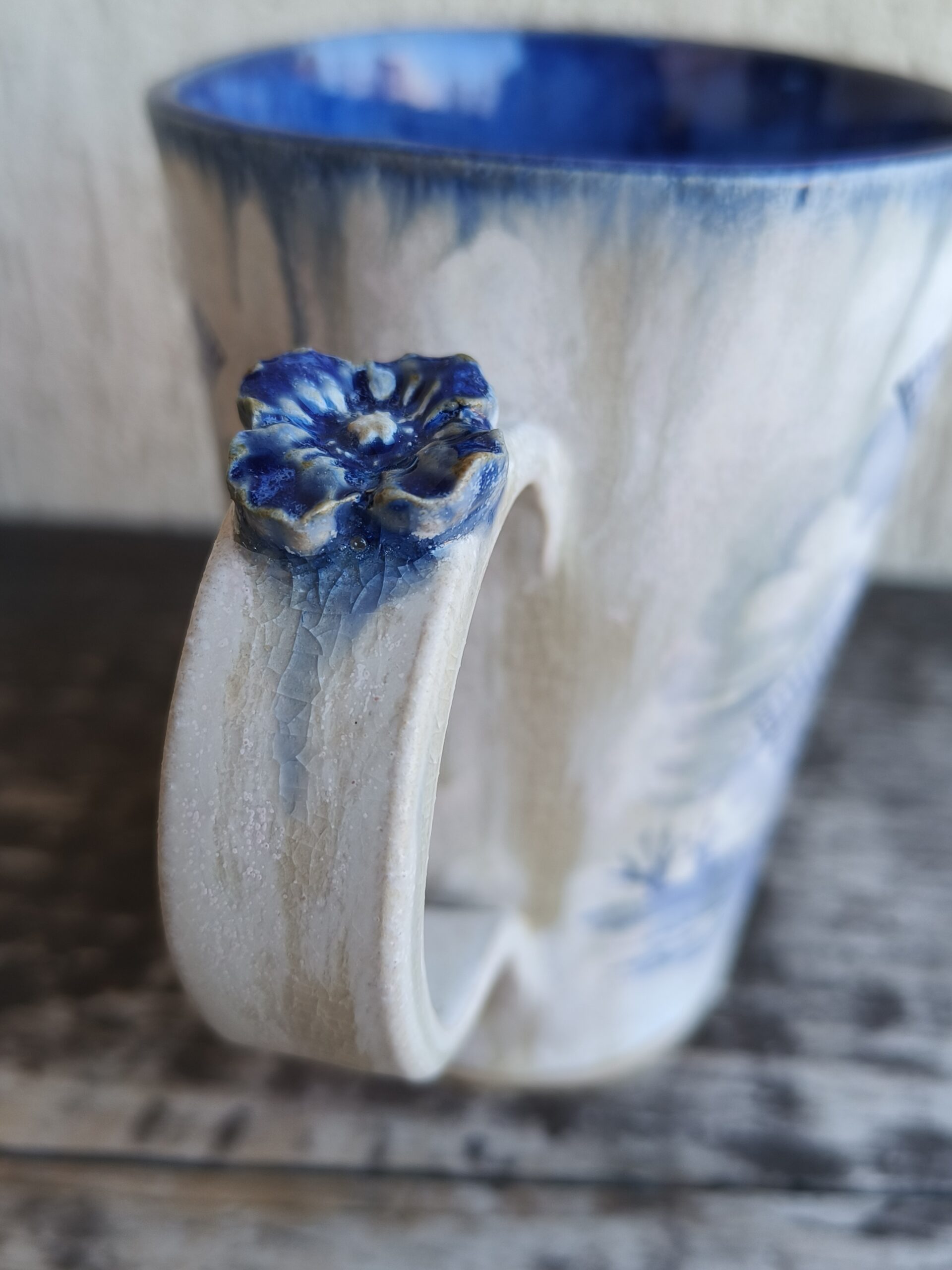 Kõrgkuumus käsitöökeraamika. Tass mahutab 475 ml. Läbimõõt ülevalt 9 cm ja alt 6,5 cm. Kõrgus 13 cm. Pealt mati, seest läikiva glasuuriga. Võib pesta nõudepesumasinas. Komplekti sobivad alustaldrikud leiab SIIT. Kohtades, kus glasuuri on paksult, esineb praokesi, augukesi ja glasuuri läbipaistval osal pragulisuse efekti (kraklee). Need ei ole defektide vaid selle glasuuri eripära. Vaata viimaseid pilte.